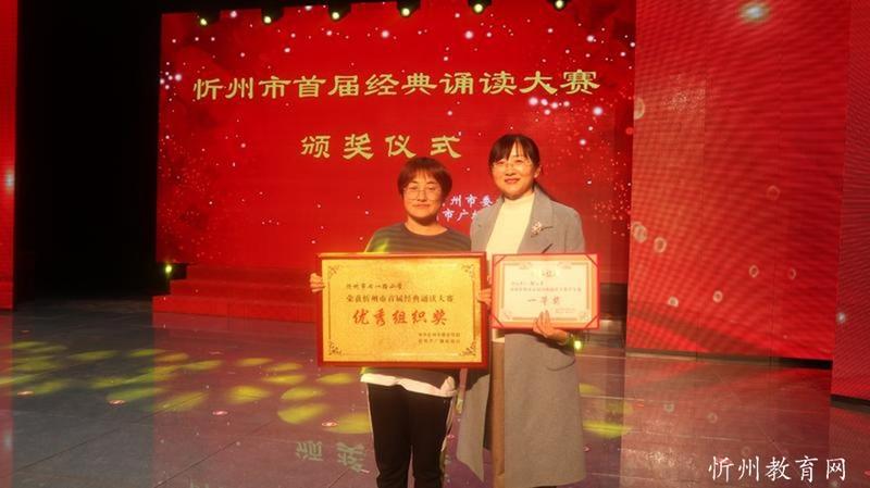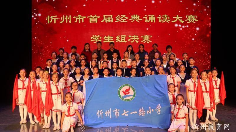 “共讀中華經(jīng)典,聆聽古詩書韻”。由中共忻州市委宣傳部主辦,忻州市廣播電視臺(tái)承辦 “忻州市首屆經(jīng)典誦讀大賽”經(jīng)過初賽海選和緊張激烈的復(fù)賽和決賽,于11月1日落下帷幕。本次比賽學(xué)生組共有四十一個(gè)參賽節(jié)目,經(jīng)過角逐,有十個(gè)節(jié)目進(jìn)入了決賽。決賽采取評(píng)委當(dāng)場(chǎng)亮分,現(xiàn)場(chǎng)點(diǎn)評(píng)的方式,最終評(píng)出一等獎(jiǎng)一名,二等獎(jiǎng)二名,三等獎(jiǎng)三名,最佳風(fēng)采獎(jiǎng)四名。七一路小學(xué)以98.51分的成績(jī)奪冠,榮獲學(xué)生組一等獎(jiǎng)。同時(shí)學(xué)校也榮獲優(yōu)秀組織獎(jiǎng)。