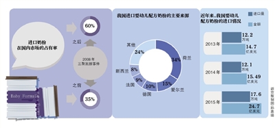 今年2月,中國(guó)海關(guān)發(fā)布的數(shù)據(jù)顯示,2015年我國(guó)進(jìn)口嬰幼兒配方奶粉達(dá)到17.6萬(wàn)噸,較2014年的12.1萬(wàn)噸增加5.5萬(wàn)噸,同比增長(zhǎng)45%;進(jìn)口嬰幼兒配方奶粉的價(jià)值達(dá)到24.7億美元,同比增長(zhǎng)59.5%。