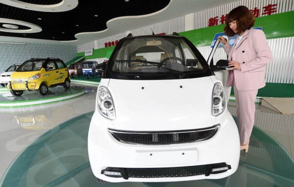 資料圖:4月5日,顧客在河北省大城縣三迪電動(dòng)車有限公司展廳選購(gòu)電動(dòng)汽車。河北省大城縣是華北地區(qū)最大的電動(dòng)車生產(chǎn)基地之一。新華社記者 李曉果 攝
