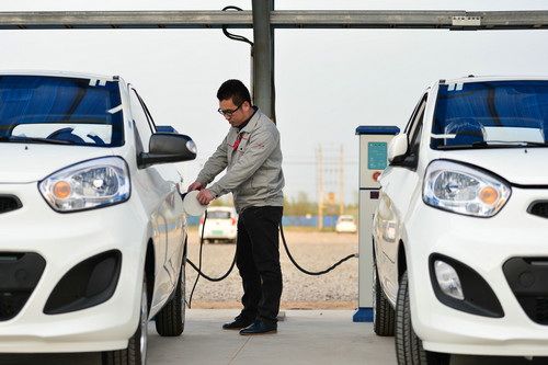 資料圖片:4月13日,河北省清河縣一家新能源汽車公司的工人在為新生產的電動汽車充電。新華社發(fā) (責任編輯:盧相?。?/p> |