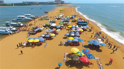 “五一”小長假臨近,海南省的各景點旅游大幅升溫。圖為游人在海南博鰲玉帶灘旅游。 新華社發(fā) 蒙鐘德攝
