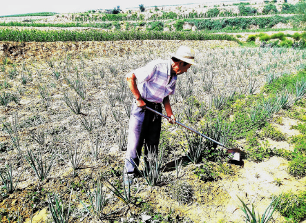 8月18日,河曲縣舊縣鄉(xiāng)楊家窊村村民劉官達正在紅蔥地里鋤草。近年來,該村充分利用產(chǎn)業(yè)扶貧資金扶持發(fā)展特色紅蔥種植,打造“一村一品”主導產(chǎn)業(yè),有效增加農(nóng)民收入,鞏固脫貧成果。賈金理 攝