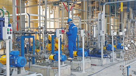 “安全生產(chǎn)天數(shù)1301天,儀表調(diào)試天數(shù)78天?!弊哌M(jìn)調(diào)度指揮中心,大屏幕上實時顯示著建設(shè)進(jìn)度和施工現(xiàn)場實時畫面,同德科創(chuàng)材料有限公司負(fù)責(zé)人樊尚斌信心十足地說:“歷時三年多的建設(shè),目前甲醇制氫、空壓制氮、導(dǎo)熱油爐等主項設(shè)備全部安裝完畢,已全面進(jìn)入管道安裝收尾和試壓高峰階段,最近爭分奪秒搶抓工期,確保按期完工?!?/p>