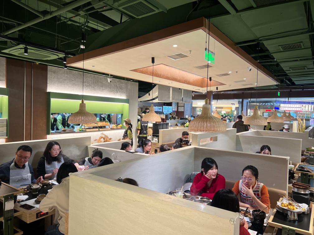 臨近跨年零點(diǎn),山緩緩餐廳山西首店還有一些顧客在排隊(duì)候餐,期待嘗鮮“山野風(fēng)”火鍋。山緩緩品牌北區(qū)運(yùn)營總監(jiān)王志剛說:“跨年當(dāng)日我們店的營收額突破8萬元。”餐飲在新風(fēng)格和新體驗(yàn)上迭代升級,區(qū)域首店也更能激發(fā)消費(fèi)者熱情。