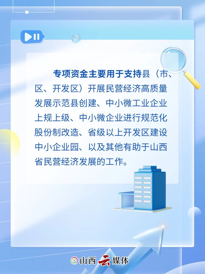 為進(jìn)一步促進(jìn)山西省民營經(jīng)濟(jì)發(fā)展,近日,省財政廳、省民營經(jīng)濟(jì)發(fā)展局共同制定了《省級民營經(jīng)濟(jì)發(fā)展專項資金管理辦法》,明確了省級民營經(jīng)濟(jì)發(fā)展專項資金的支持內(nèi)容和支持標(biāo)準(zhǔn),自2025年6月1日起施行。