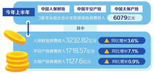 2025年上半年,財產(chǎn)保險行業(yè)整體運行穩(wěn)健,承保質(zhì)效持續(xù)改善,行業(yè)格局呈現(xiàn)出穩(wěn)中向好的態(tài)勢。從整體看,中國人保財險、中國平安產(chǎn)險、中國太保產(chǎn)險3家龍頭險企合計實現(xiàn)原保險保費收入6079億元,占據(jù)約63%的市場份額。其中,人保財險保費收入3232.82億元,同比增長3.6%;平安產(chǎn)險1718.57億元,同比增長7.1%;太保產(chǎn)險1127.6億元,同比增長0.9%。綜合成本率方面,人保財險、平安產(chǎn)險、太保產(chǎn)險分別為95.3%、95.2%和96.3%,均較去年有所下降,承保盈利水平明顯提升。