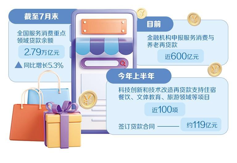 今年以來,金融機構(gòu)持續(xù)完善內(nèi)部業(yè)務(wù)流程,聚焦食、住、行、游、購、娛等重點消費領(lǐng)域,擴大高質(zhì)量信貸供給。截至7月末,全國服務(wù)消費重點領(lǐng)域貸款余額2.79萬億元,同比增長5.3%,比年初新增1642億元,今年前7個月的新增貸款比去年全年新增貸款還要多630億元。