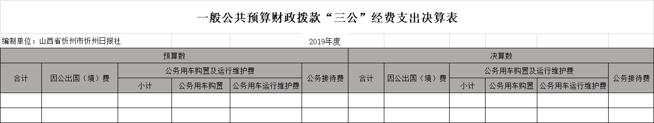 (六)機關運行經費執(zhí)行情況說明:因財政未給忻州日報社撥付機關運行經費,故我單位無機關運行經費。