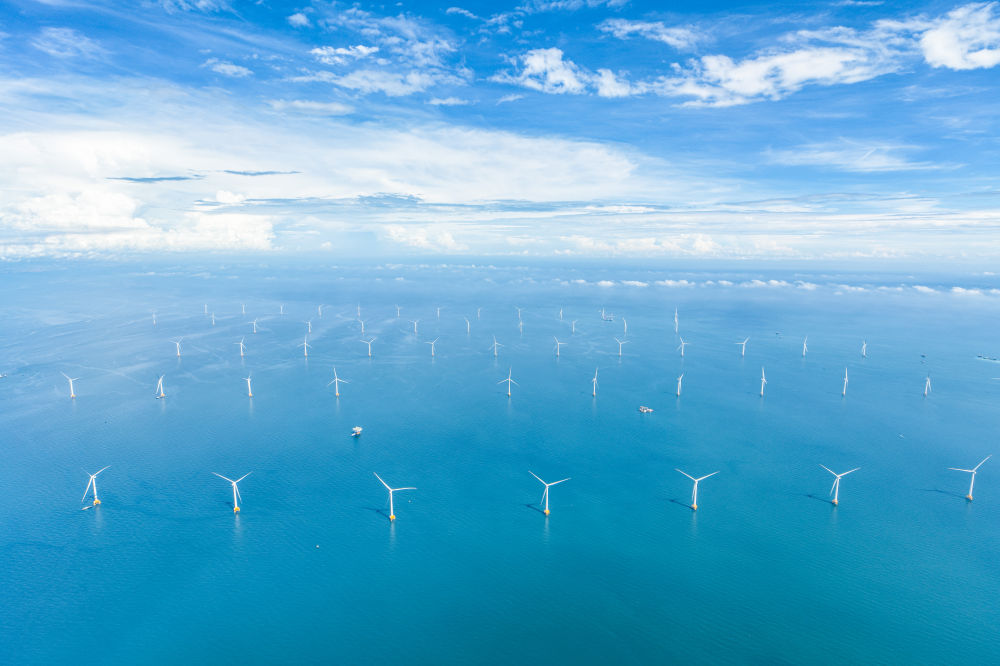 北部灣畔,天高云闊,80多臺風機矗立在碧海藍天之間。伴隨葉片徐徐轉(zhuǎn)動,陣陣海風源源不斷地轉(zhuǎn)化為清潔電能,點亮萬家燈火。去年12月,廣西首個海上風電項目——防城港海上風電示范項目A場址工程正式全容量并網(wǎng)發(fā)電。