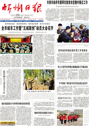 4月22日,忻州市召開會議,動員全市開展“五城聯(lián)創(chuàng)”工作。提出了要以建設(shè)宜居忻州、造福人民群眾為目的、以“創(chuàng)衛(wèi)”為基礎(chǔ)、以“創(chuàng)園”為重點的創(chuàng)建國家衛(wèi)生城市、省級園林城市、國家環(huán)保模范城市、省級智慧城市、省級文明城市。同時宣布成立了“五城聯(lián)創(chuàng)”總指揮部,全面推進了“五城聯(lián)創(chuàng)”工作。9月2日和12月9日,我市相繼召開忻州城區(qū)創(chuàng)建國家衛(wèi)生城市大會和再動員大會,對創(chuàng)衛(wèi)工作再部署、任務(wù)再明確,進一步動員市、區(qū)各級各部門提高認識,明確責(zé)任,強化措施,狠抓落實,確保城區(qū)順利創(chuàng)建國家衛(wèi)生城市。目前中心城區(qū)創(chuàng)建國家衛(wèi)生城市通過專家暗訪,14個縣(市、區(qū))實現(xiàn)創(chuàng)衛(wèi)全覆蓋,全省唯一。中心城區(qū)和原平、五臺、寧武、岢嵐創(chuàng)建省級園林城市通過省考核驗收,數(shù)量全省第一。加強大氣污染防治,全年二級以上天氣同比增加9天,是全省完成年度目標(biāo)任務(wù)的3個市之一。(2016年4月23日《忻州日報》)