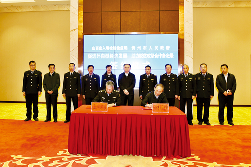 為進一步貫徹落實省委省政府《關于全面擴大開放的意見》,市政府和山西出入境檢驗檢疫局本著“合作、服務、促進、發(fā)展”的原則,經認真協(xié)商,就發(fā)揮各自職能優(yōu)勢,促進農產品擴大出口、創(chuàng)建法蘭出口質量安全示范區(qū)以及支持五臺山機場航空口岸臨時對外開放等方面達成共識,建立合作機制,促進我市對外開放和外向型經濟發(fā)展,助力脫貧攻堅。具體合作事項包括:一、促進農產品擴大出口。確定重點幫扶產業(yè),創(chuàng)建出口食品農產品質量安全示范區(qū),培育出口企業(yè),打造知名品牌,拓展國際市場。二、助推出口工業(yè)品質量提升。推動質量品牌提升,推進工業(yè)產品“三同”工程,加強國外技術性貿易措施應對,強化公共檢測技術服務。三、支持五臺山機場航空口岸臨時對外開放。全力支持五臺山機場對外開放口岸平臺建設,科學規(guī)劃和建設五臺山機場口岸檢驗檢疫技術查驗設施,做好口岸核心能力建設和動植物檢疫規(guī)范化建設各項工作,防范國外人類傳染病和動植物疫情疫病傳入,保障國門生物安全。