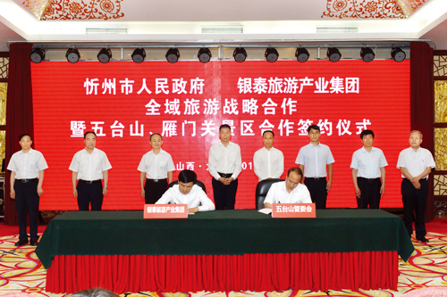 忻州市與銀泰旅游產(chǎn)業(yè)集團(tuán)全域旅游戰(zhàn)略合作暨五臺山、雁門關(guān)景區(qū)合作協(xié)議簽約儀式現(xiàn)場。宮愛文 攝