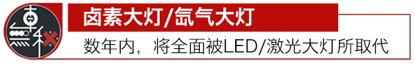 未來(lái)數(shù)年內(nèi),汽車鹵素大燈和氙氣大燈也面臨消失的威脅,隨著LED車燈技術(shù)的興起,甚至激光車燈的崛起,或?qū)⒙裨犭瘹獯鬅?,因?yàn)槠錈艄庑Ч?,同時(shí)更節(jié)能。