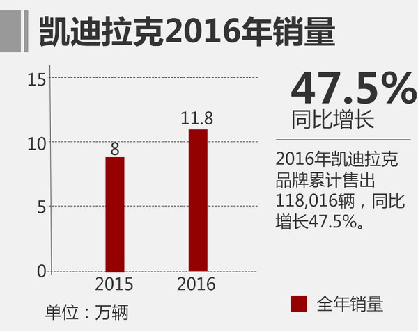 作為中國市場(chǎng)最早的美系豪華品牌的代表,通用旗下豪華品牌凱迪拉克終于在2016年11月中旬完成“十萬”銷量大關(guān),2016年全年累計(jì)售出118,016輛,同比大增47.5%,成為第二梯隊(duì)中銷量增長第三快的豪華品牌。
