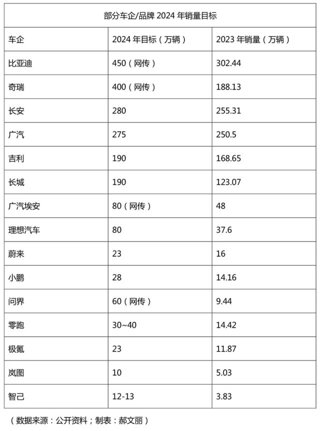 有的車企理性十足,將2024年目標(biāo)定在比2023年銷量略高;有的車企則相當(dāng)狂熱,目標(biāo)翻倍甚至翻幾倍!車企們2024年的目標(biāo)能實(shí)現(xiàn)嗎?超高目標(biāo)的車企哪來(lái)的自信?我們從中挑選了部分車企,對(duì)其公布的銷量目標(biāo)進(jìn)行盤點(diǎn)及分析,一探究竟。