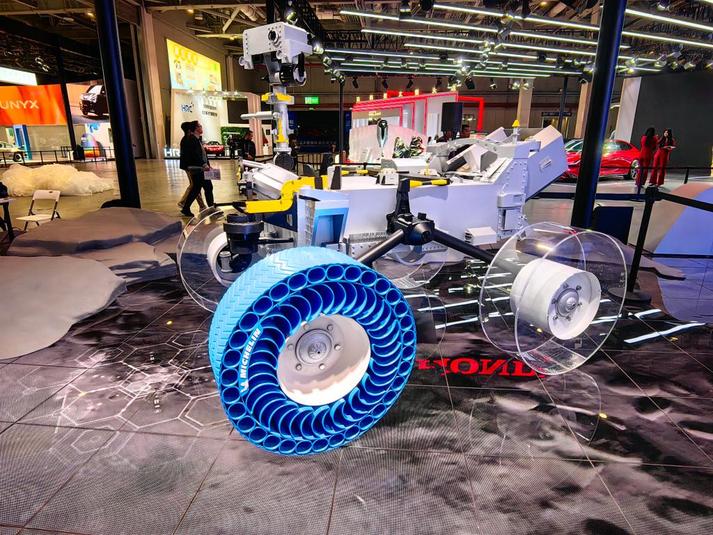 進博會期間,米其林將亞洲首發(fā)一款月球探測車專用的免充氣輪胎。新華社記者周蕊 攝
