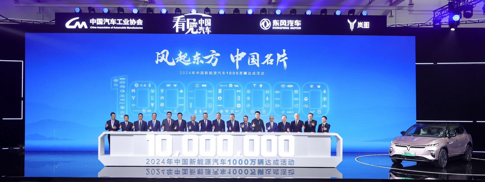 11月14日,在中華人民共和國(guó)工業(yè)和信息化部指導(dǎo)下,由中國(guó)汽車工業(yè)協(xié)會(huì)主辦,東風(fēng)汽車集團(tuán)有限公司(以下簡(jiǎn)稱東風(fēng)汽車)承辦的2024年中國(guó)新能源汽車1000萬輛達(dá)成活動(dòng)在東風(fēng)嵐圖云峰工廠盛大舉行,嵐圖知音作為1000萬輛中國(guó)新能源汽車下線車型。