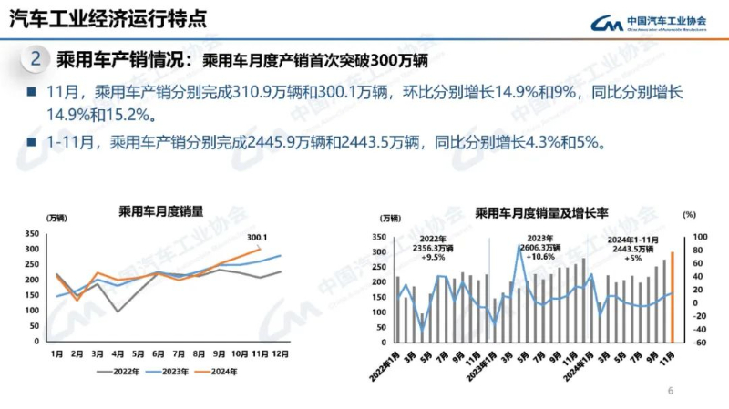 | 中汽協(xié):11月乘用車月度產(chǎn)銷首次突破300萬輛,新能源車產(chǎn)銷突破150萬輛 |