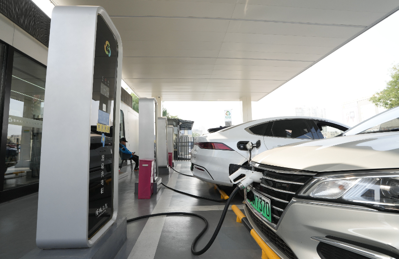 (資料照片)10月12日,在北京木樨園公交場(chǎng)站一座超級(jí)充電站內(nèi),新能源小客車在充電。新華社記者 鞠煥宗 攝