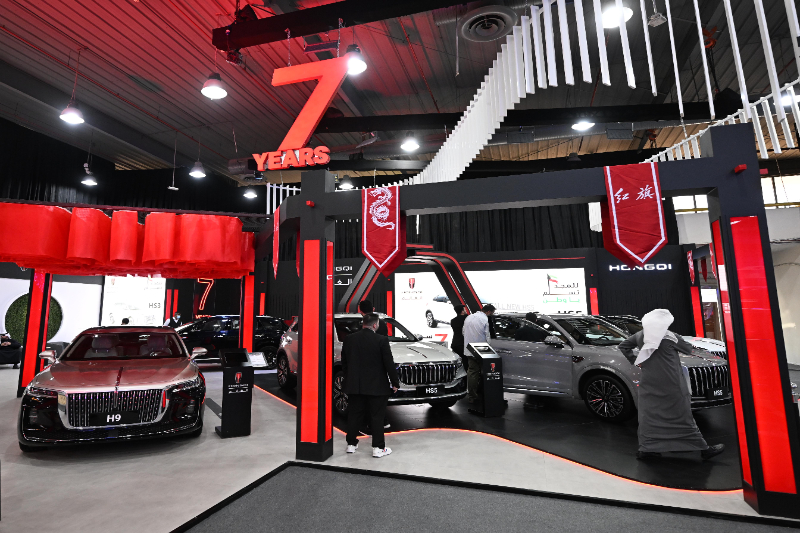 (資料圖)2月3日,在科威特哈瓦利省,人們在汽車世界展上參觀紅旗汽車。新華社發(fā)(阿薩德攝)
