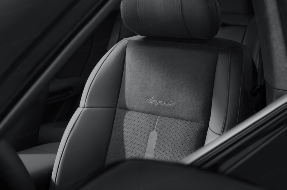 內(nèi)飾配色提供速域紫、馳影灰、競(jìng)速灰三種選擇,速域紫夜色霓虹與尾焰的顏色,極具時(shí)尚與運(yùn)動(dòng)感;馳影灰靈感源于賽道柏油的中性灰調(diào),理性而不平庸;競(jìng)速灰質(zhì)感運(yùn)動(dòng)、出眾,采用5.54㎡仿麂皮超纖絨與Nappa全粒面真皮拼接,座椅上“延伸賽道”紋理與“Lafa5”專(zhuān)屬字標(biāo)燙印,在細(xì)節(jié)處彰顯豪華運(yùn)動(dòng)質(zhì)感。