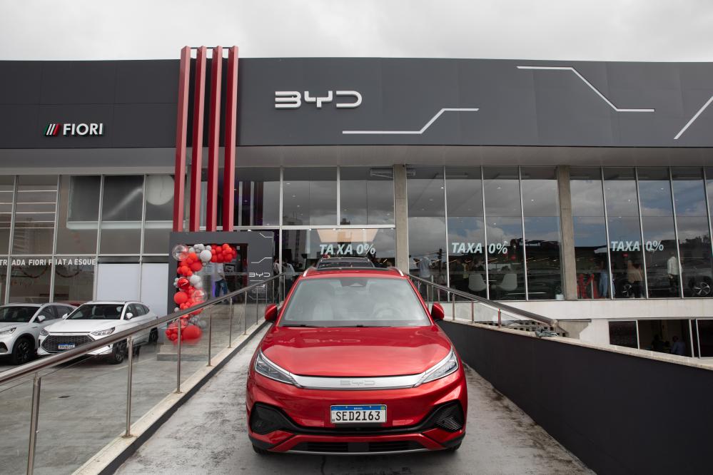 這是在巴西巴伊亞州拍攝的一家比亞迪純電動汽車銷售店鋪。新華社記者 王天聰 攝