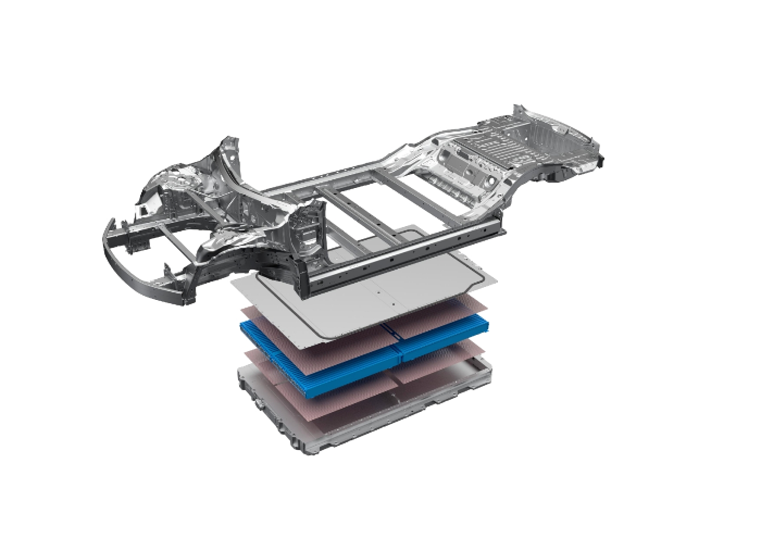 CTB技術(shù)以“電池車身一體化”為核心設(shè)計(jì)理念,并且在“蜂窩”中找到靈感,結(jié)合刀片電池獨(dú)有的長(zhǎng)方體結(jié)構(gòu)和超級(jí)強(qiáng)度,衍生出“類蜂窩鋁”結(jié)構(gòu),帶來(lái)電池成組技術(shù)里程碑式的革新,通過將刀片電池包與車身剛性連接,二為一形成完整體,將地板(電芯上蓋)-電芯-托盤三者與車身集成,形成高強(qiáng)度的“整車三明治”結(jié)構(gòu)。