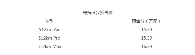 網(wǎng)通社從官方獲悉,基于中國首個鋁基輕量化平臺打造的首款車型奇瑞eQ7正式開啟預(yù)售,共推出3款車型,預(yù)售價14.39萬元-16.39萬元。