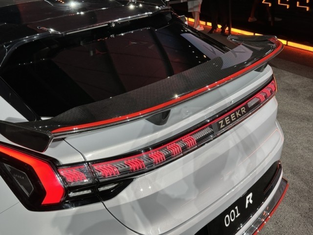 車尾部分,極氪001 FR版在后備箱的上方加入了大尺寸的碳纖維尾翼,并且融入了紅色飾條做點(diǎn)綴,搭配后保險(xiǎn)杠處夸張的碳纖維后擴(kuò)散器,不管在空氣動(dòng)力學(xué)還是在重量上都有積極地作用,在整體的視覺感受上同樣營造出十足的運(yùn)動(dòng)感。