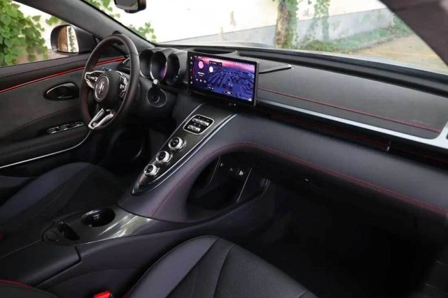 新車的內(nèi)飾通過大面積的黑色來與外觀相呼應(yīng),并且通過紅色的縫線進(jìn)行點綴,進(jìn)一步提升視覺效果。三圓形的儀表盤同樣有著較強(qiáng)的復(fù)古風(fēng),中間位置一塊懸浮式的中控大屏則將實用拉滿。