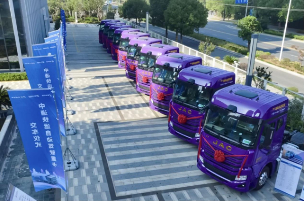在重型商用車領(lǐng)域,江淮重卡“火力全開”,首款實(shí)現(xiàn)收費(fèi)站到收費(fèi)站領(lǐng)航自動駕駛功能的江淮跨越K7智能版批量交付中通快運(yùn),助力快遞快運(yùn)行業(yè)智慧發(fā)展;百臺新能源重卡批量交付,也將為城市建設(shè)綠色運(yùn)輸起到推動及示范作用。