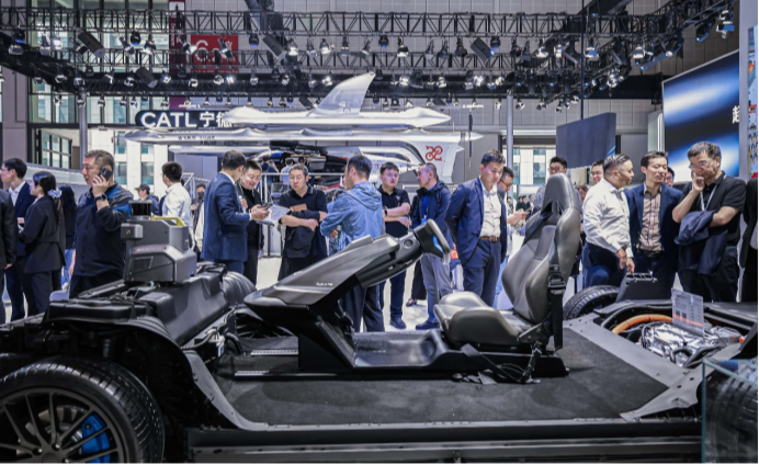 央廣網(wǎng)北京消息 (記者姜鵬)2025年4月23日,2025上海國(guó)際車(chē)展開(kāi)幕,寧德時(shí)代高安全旗艦版滑板底盤(pán)——磐石底盤(pán)正式亮相,同時(shí)寧德時(shí)代驍遙雙核電池、寧德時(shí)代鈉新電池、寧德時(shí)代第二代神行超充電池進(jìn)行了展示。
