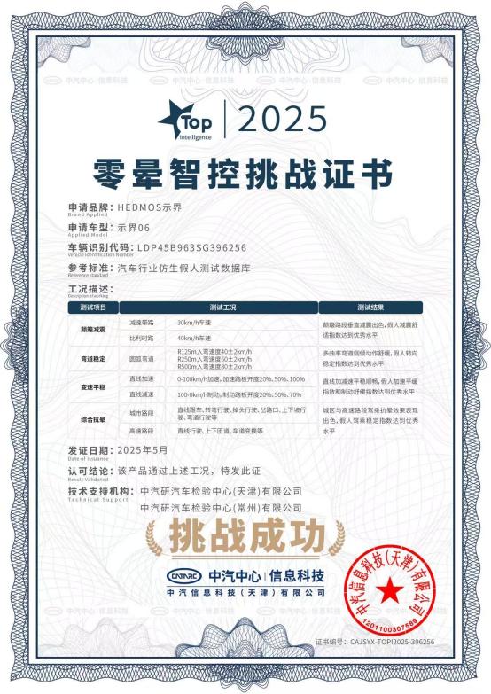 近期,在行業(yè)首次的暈動(dòng)仿生假人零暈智控挑戰(zhàn)中,示界06展現(xiàn)了優(yōu)異的駕控表現(xiàn)。中國汽車研究中心有限公司高級(jí)工程師趙博文在發(fā)布會(huì)現(xiàn)場(chǎng)公布測(cè)試數(shù)據(jù)時(shí)指出:“通過精準(zhǔn)的電機(jī)扭矩動(dòng)態(tài)分配、法系底盤調(diào)?;?,以及搭載的‘零暈智控’技術(shù)體系,示界06在六維駕控測(cè)試中表現(xiàn)出行業(yè)優(yōu)秀水平。”測(cè)試結(jié)果顯示,示界06完美實(shí)現(xiàn)了“6不”卓越體驗(yàn):簸路不顛、彎道不飄、加速不竄、減速不抖、駕乘不暈、長(zhǎng)途不累,為行業(yè)樹立了駕乘舒適新標(biāo)桿。