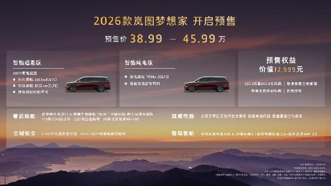 | 混動MPV技術天花板!2026款嵐圖夢想家攜8大首發(fā)黑科技開啟預售! |