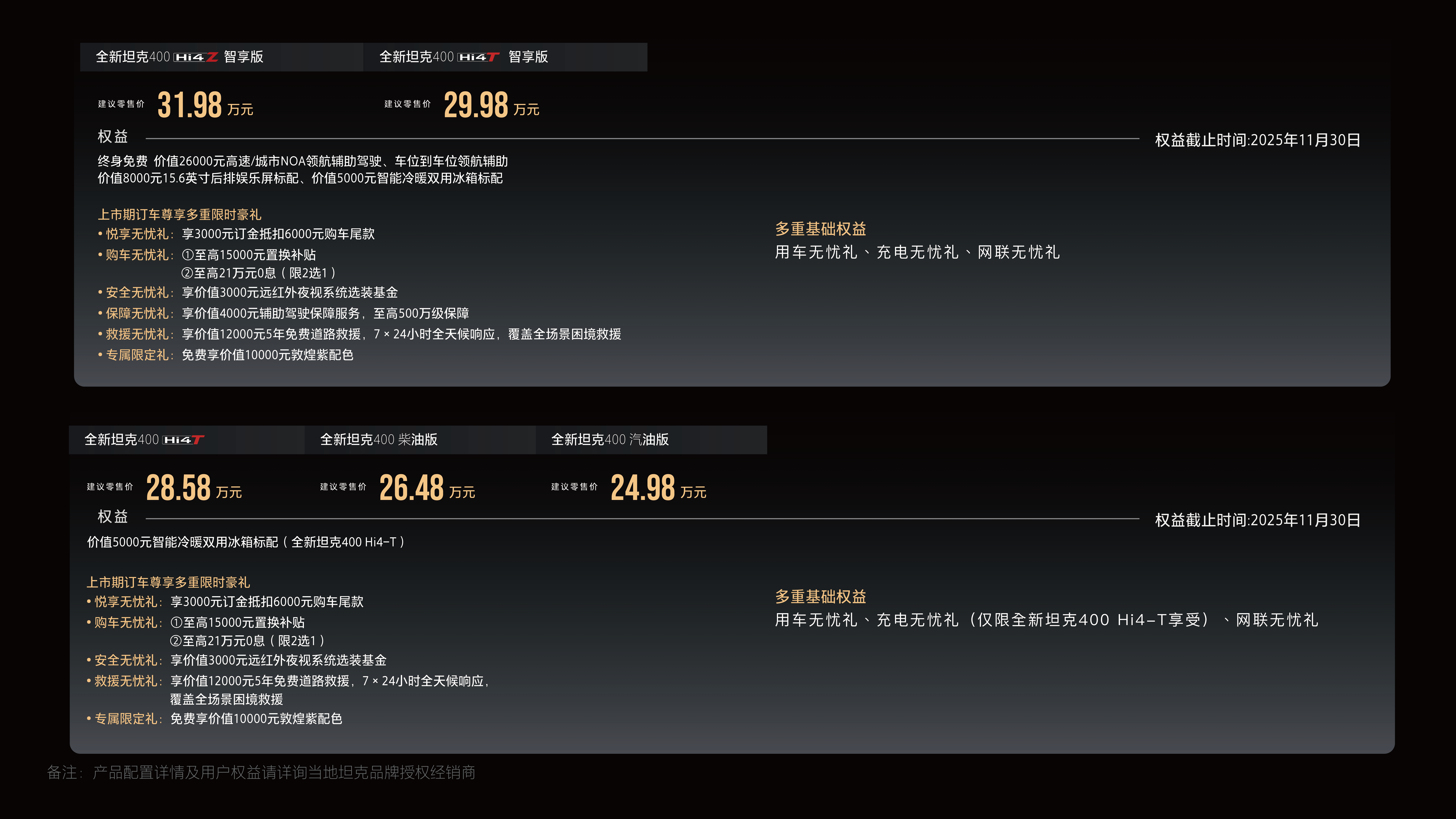 | 售價(jià)24.98萬(wàn)元起 全新坦克400正式上市 |