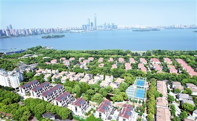 江蘇省蘇州市近年持續(xù)推動生態(tài)文明建設(shè),有效改善城區(qū)河湖水質(zhì),構(gòu)建綠色生態(tài)宜居城市。圖為坐落在蘇州市金雞湖畔的居民住宅區(qū)。華雪根攝(人民視覺)