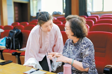 陳張霞《白蛇傳》劇照。?? 快到中午12時,日頭高照,氣溫攀升,北京京劇院一間排練廳里,氍毹(qúshū)上的故事也走到了焦灼的頂點:小青舉劍欲斬許仙,白素貞橫身于二人之間,又擋又護,親情與愛情撕扯著,讓她左右為難……端午假期,北京京劇院《白蛇傳》將登臺國家大劇院。這幾天,陳張霞、包飛、張淑景、孟憲騰等主演正在著名京劇表演藝術家閻桂祥的親自指導下,為這部作品進行最后的打磨。 閻桂祥坐在舞臺對面看了一會兒,又一次起身來到分別飾演白素貞、許仙、小青的陳張霞、包飛、張淑景面前?!艾F(xiàn)在是矛盾最激烈的時候,白蛇怕小青真的殺了許仙,一定得多哄著她,而對許仙,她又愛,又忍不住責備。”閻桂祥給陳張霞示范起來,轉(zhuǎn)身、舉手、眼神,處處流淌著悲傷而濃烈的深情,“你要配合許仙,要聽他說話,離得近點,不能越唱越往后撤,也不能讓許仙只有背影對著觀眾?!标悘埾碱I悟得很快,水袖一揮,白蛇與許仙再次依偎對望,面向觀眾席的角度恰到好處,能讓觀眾清楚看到兩人眉梢眼角化不開的愁緒與眷戀。 從情出發(fā)、以情動人,顯然是陳張霞演繹的這版《白蛇傳》的突出特色。這一版本由她的恩師閻桂祥親授,4年前曾在梅蘭芳大劇院上演,許多觀眾看得潸然淚下?!拔矣X得,這跟老師的處理方式有很大關系,她在這部作品里運用的感情非常多。”陳張霞說?!栋咨邆鳌窔v來有過不少詮釋版本,閻桂祥年輕時看過劉秀榮、杜近芳、趙燕俠等多位大師呈現(xiàn)的版本,她博采眾長,加入了自己對角色、對故事的深刻理解。