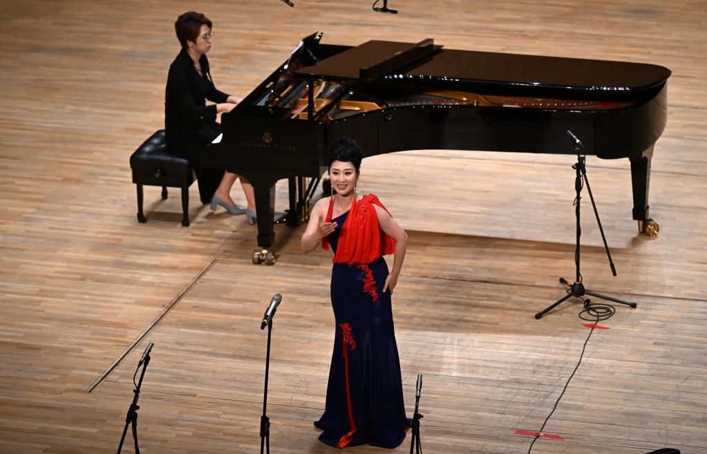7月1日,天津歌舞劇院演員陳姝在演唱選自歌劇《玉鳥兵站》的曲目《我心永愛》。新華社記者 趙子碩 攝