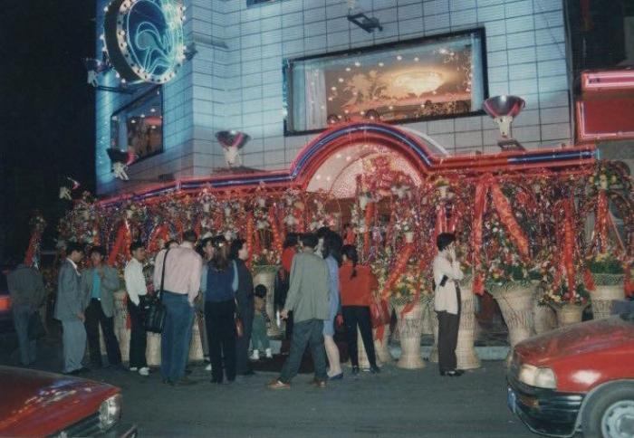電視劇《繁花》開播后,不少上海觀眾在朋友圈曬舊照,回憶20世紀(jì)90年代黃河路的繁華景象。圖為1992年10月,位于黃河路的“笠笠酒家”開業(yè)的場景。 受訪者供圖