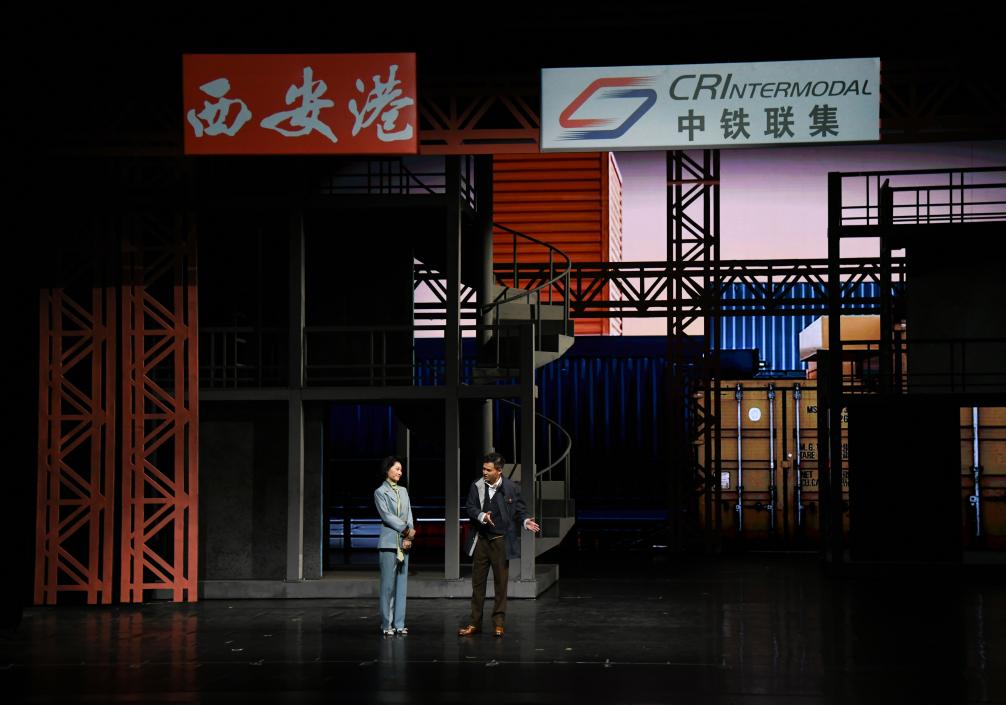 當(dāng)日,由西安話劇院原創(chuàng)排演的話劇《長安號的笛聲》在西安首演。該劇講述了西安全力推動中歐班列集結(jié)中心建設(shè),將一座四等小站建設(shè)成為“國際陸港”的奮進(jìn)故事。