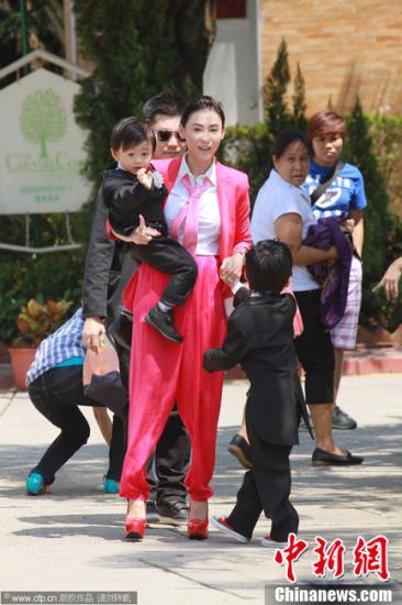 資料圖:張柏芝攜同兩個(gè)兒子Lucas(謝振軒)和Quintus(謝振南)。圖片來(lái)源:CFP視覺中國(guó)