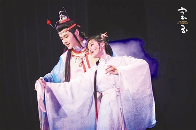 作為經(jīng)典IP改編的原創(chuàng)音樂劇,《寶玉》從創(chuàng)作過程到成型演出,持續(xù)引起外界廣泛關(guān)注和熱烈反響?!秾氂瘛氛缙涿?,以“寶玉”視角向眾人鋪開大觀園的離合悲歡。在有緣人對寶玉命運的循循引領(lǐng)下,逐一展露寶玉的覺醒、黛玉的哀婉風骨、寶釵的隱忍綿長、王熙鳳的潑辣悲愴等人物特質(zhì)。全劇以歌入情,以舞動人,為觀眾呈現(xiàn)了一個紅樓獨特的音樂劇表達。對于耳熟能詳?shù)慕?jīng)典片段“寶黛共讀西廂”“黛玉葬花”“金玉良緣大婚”等,則通過“片段式敘事”與“閃回蒙太奇”手法串聯(lián)而起。