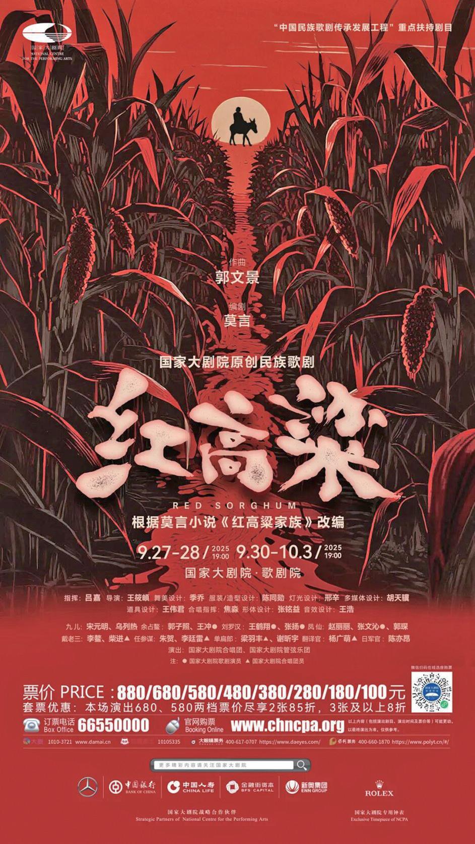 為大力弘揚(yáng)英雄主義、愛國(guó)主義,在2025年紀(jì)念中國(guó)人民抗日戰(zhàn)爭(zhēng)暨世界反法西斯戰(zhàn)爭(zhēng)勝利80周年之際,國(guó)家大劇院隆重推出原創(chuàng)民族歌劇《紅高粱》,即將于9月27日至10月3日迎來世界首演。作為國(guó)家大劇院創(chuàng)作推出的第23部原創(chuàng)歌劇,該劇以文學(xué)經(jīng)典的全新舞臺(tái)呈現(xiàn),歌頌永恒熾熱的民族精神。