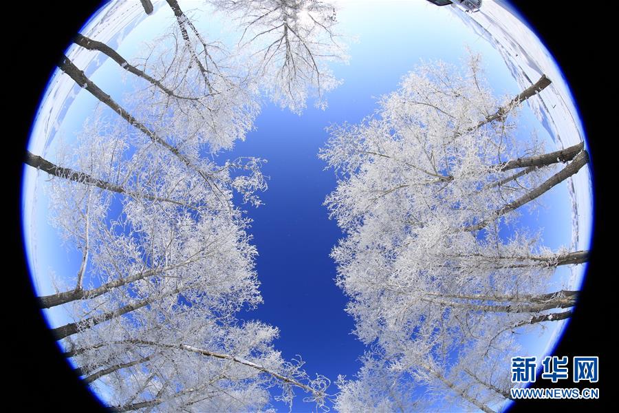 1月3日在新疆阿勒泰地區(qū)富蘊縣吐爾洪鄉(xiāng)拍攝的霧凇美景。藍天映襯下的冰雪世界顯得一片肅穆。 新華社發(fā)(丁寧 攝)