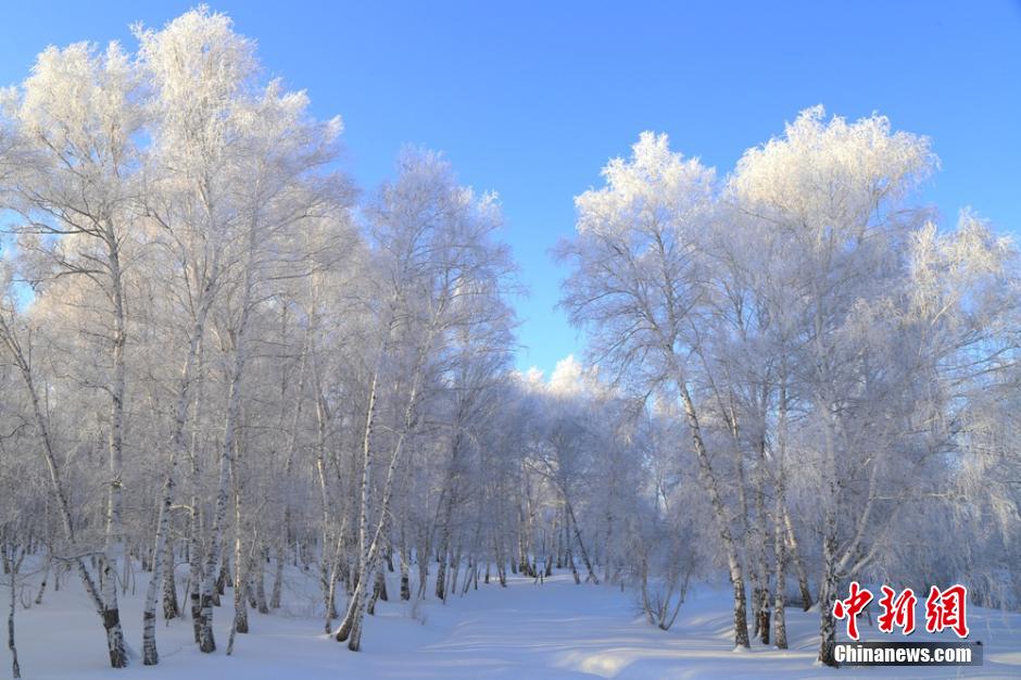 新疆阿勒泰罕見降雪后 現(xiàn)千里霜掛美景