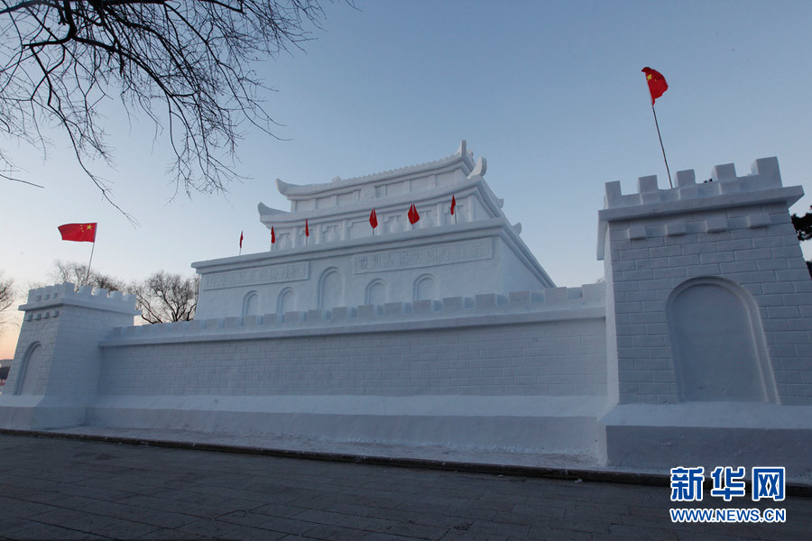 1月5日,長春,第三屆南湖公園雪雕展已全部完工,總造雪量一萬多立方米。共分為三個區(qū)域即迎賓區(qū)、歡樂區(qū)、復(fù)興區(qū)。