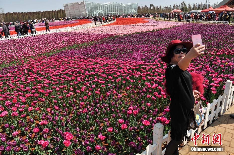 3月9日,昆明撈魚河濕地公園22畝約60萬株郁金香盛開,吸引了大量的游客和市民排隊(duì)前來賞花、拍照。據(jù)了解,撈魚河濕地公園種植的郁金香均是從荷蘭進(jìn)口的,花期為25天。自向民眾開放以來,每天平均有兩萬人進(jìn)園賞花。中新社記者 任東 攝