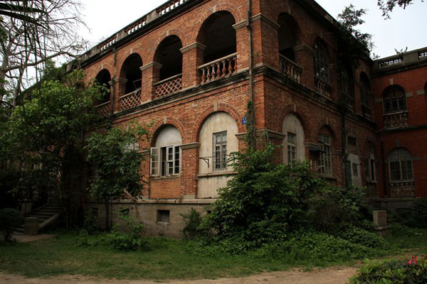 日本領(lǐng)事館,建于1897年,現(xiàn)編門(mén)牌鹿礁路24號(hào)至28號(hào),離英國(guó)領(lǐng)事館僅一箭之地,翼角可望。該建筑四周設(shè)有連拱券柱式外廊,雙柱桁架,樓頂女兒墻與外廊護(hù)欄,采用的卻是本土燒制的紅陶寶瓶狀透空欄桿,這是維多利亞時(shí)代英式建筑的堂皇高軒,與中國(guó)式古樸典雅的折中。1928年,日本領(lǐng)事館在其館側(cè)又建造兩幢紅磚樓,以做日本警署及其公寓所用,其中28號(hào)樓為典型的日本明治維新后的和式現(xiàn)代建筑。