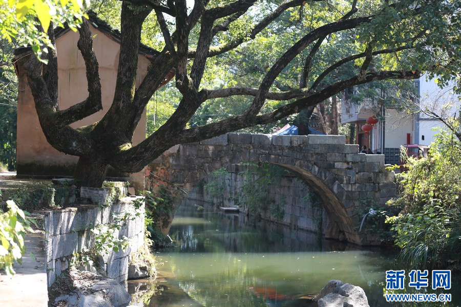 江口村布局呈現(xiàn)魚骨狀,沿著河道及山腳分布。(新華網(wǎng)發(fā) 汪家榮 攝)