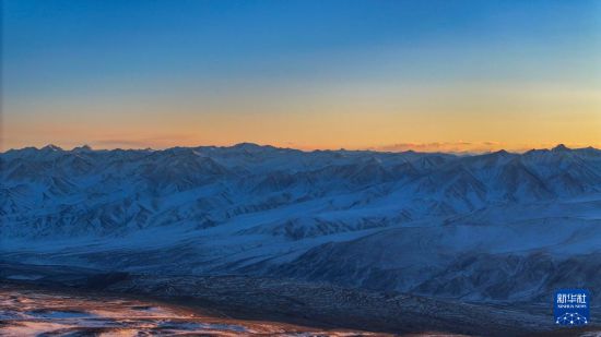 這是夕陽下慕士塔格峰周邊的昆侖山脈(1月12日攝,無人機(jī)照片)。